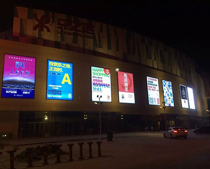 點(diǎn)擊商場(chǎng)外墻大型廣告拉布燈箱